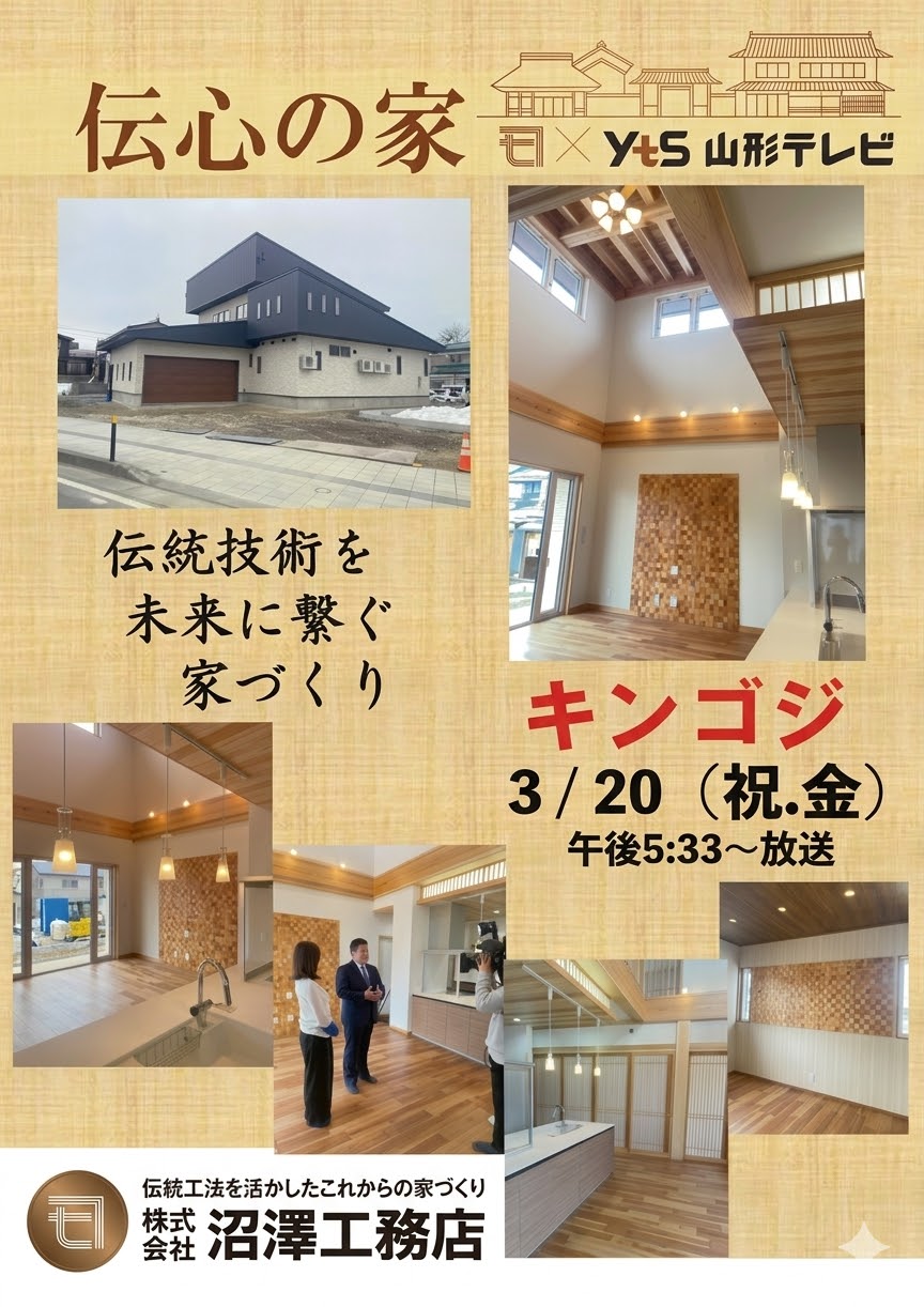 伝統工法を活かしたこれからの住まい「伝心の家」。 山形テレビの番組「ゴジダス」にて、